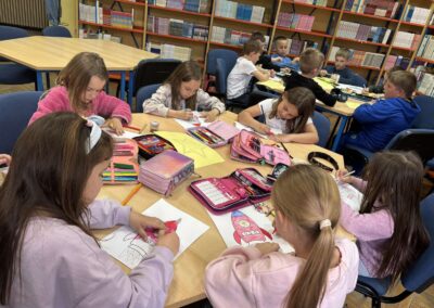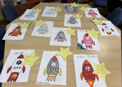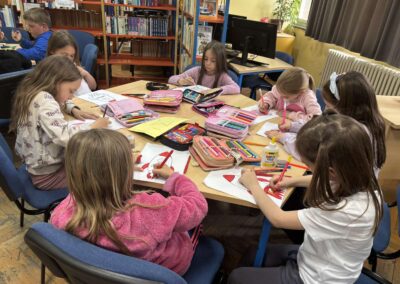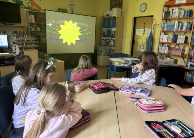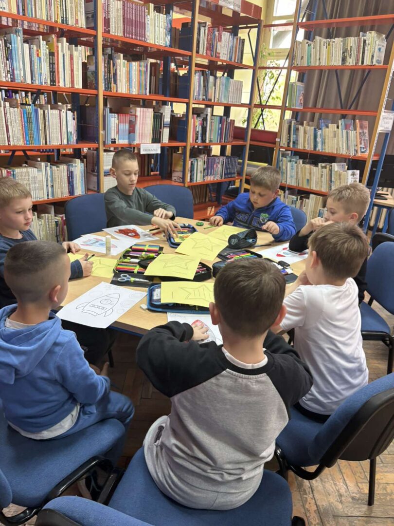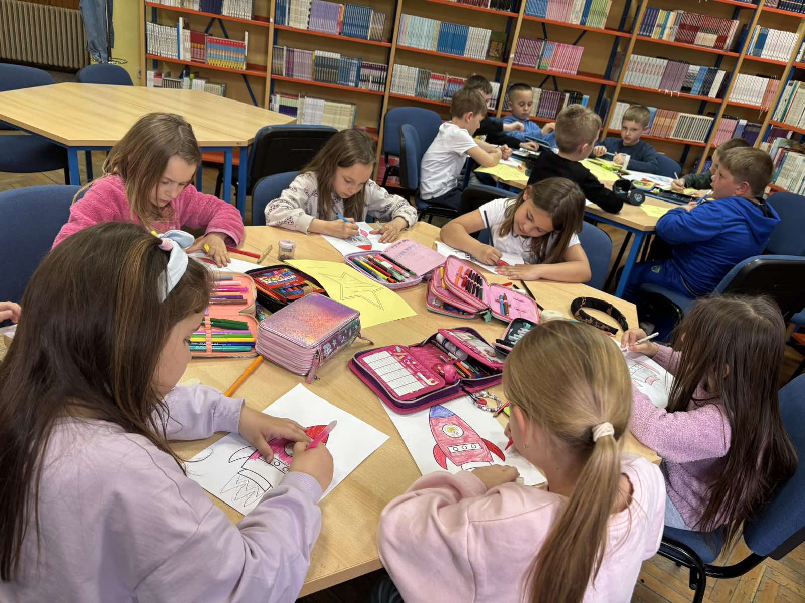 U školskoj knjižnici zavladala je prava svemirska atmosfera! Učenici 1. a razreda, u pratnji svoje učiteljice Violete Groznice, posjetili su knjižnicu kako bi na poseban način obilježili manifestaciju Noć knjige inspiriranu astronomijom uz misao vodilju koju smo pronašli u pjesmi „Astronautice Vinke“ koji je tekst i video napisala i režirala Vinka Bavčević, mag. paed.