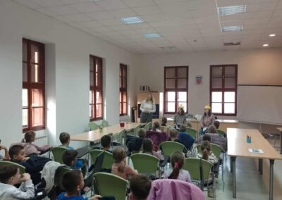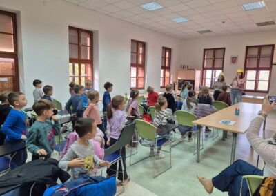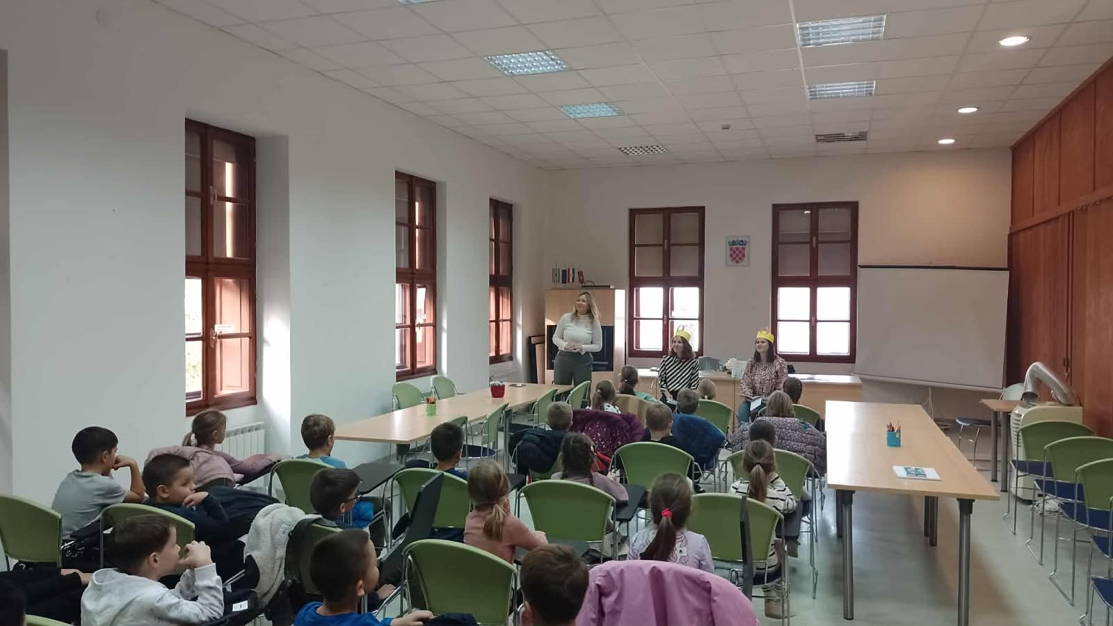Na predstavljanje slikovnice došle su nam učiteljice Ivana Augustinović i Violeta Groznica, zajedno sa svojim učenicima prvih razreda koji su s velikim zanimanjem pratili čitanje slikovnice, postavljali pitanja i dijelili vlastita iskustva o prvim školskim danima. Atmosfera je bila vedra, opuštena i puna smijeha.