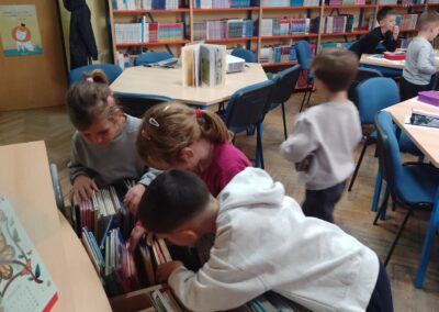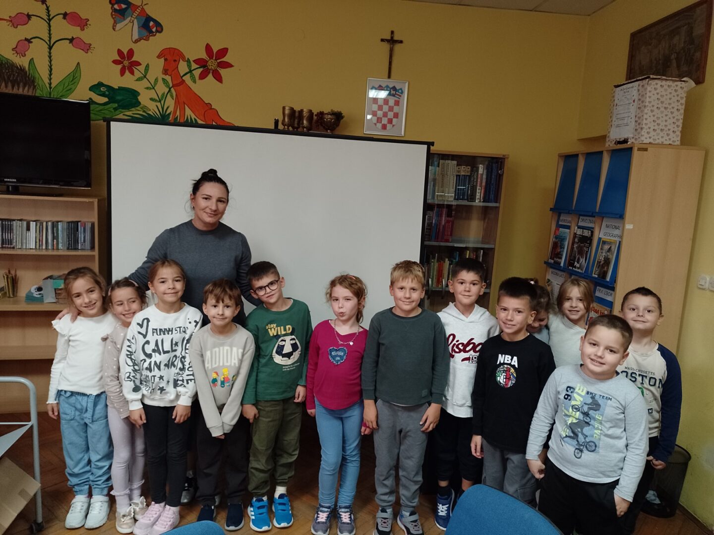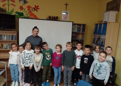 Školska knjižničarka, pripremila je zanimljiv i edukativan sat s ciljem upoznavanja pojmova knjižnice, knjižare, knjižničara, pravila posuđivanja knjiga, ponašanja u prostoru knjižnice i čuvanja književnog inventara kroz zanimljivu priču “Uljuđeni vuk” autorice Becky Bloom Pascal Biet. Mnogobrojne ručice u zraku potvrdile su da su prvašići bili pažljivi slušači tijekom učenja, odnosno čitanja priče.