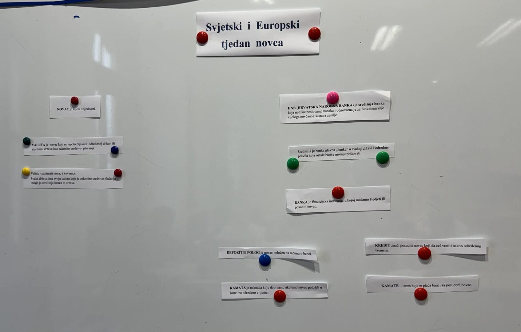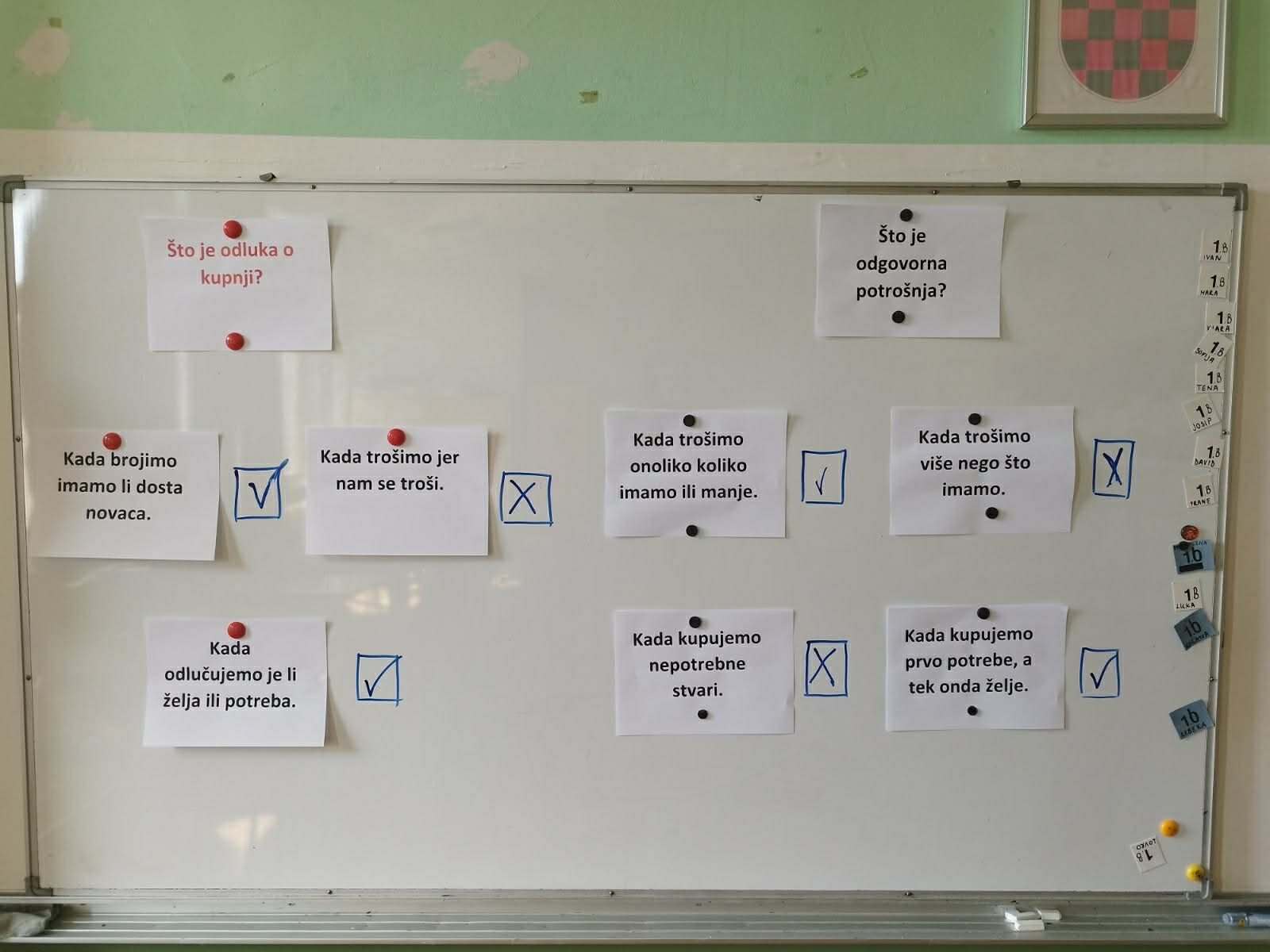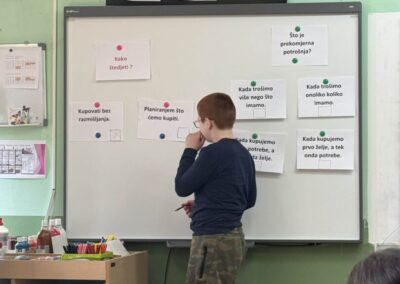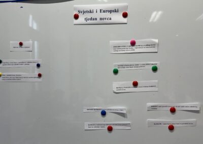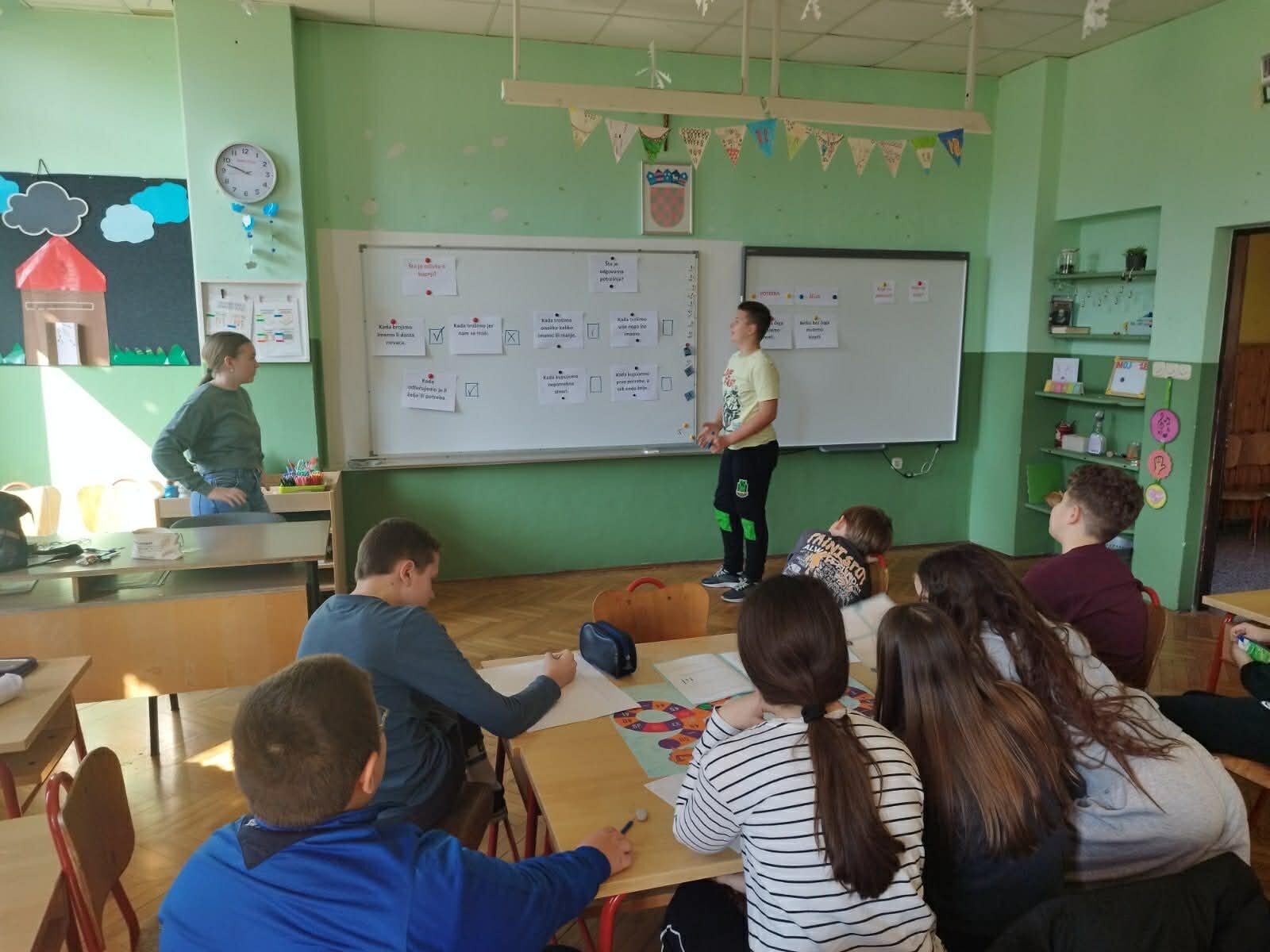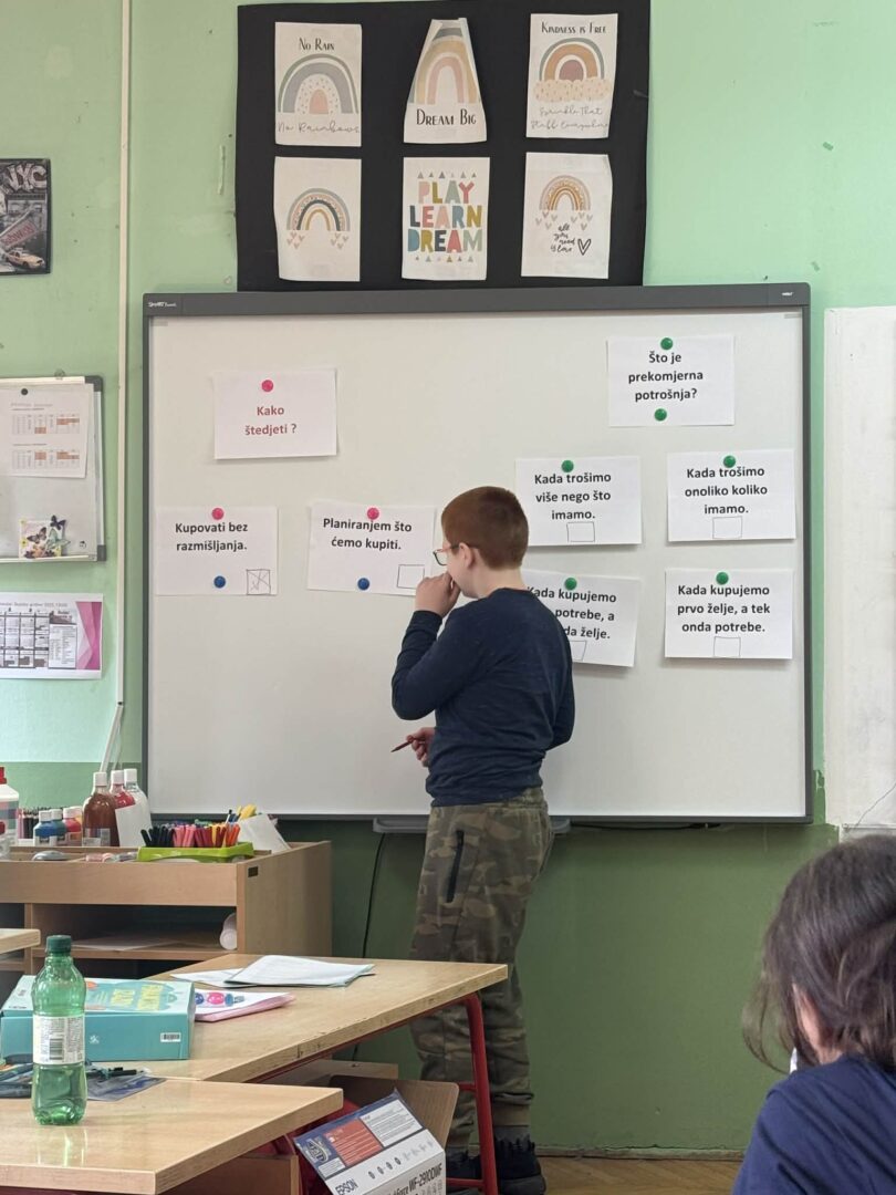 Na satu matematike i satu razrednika učenici petih razreda upoznali su pojmove iz područja financijske pismenosti: novac, valuta, HNB (Hrvatska narodna banka), kredit, štednja i slično. Učenici su kroz priče iz svakodnevnog života ponovili što su potrebe i što su želje i kako pravilno i odgovorno donositi odluke vezane uz potrošnju i štednju novca. Sudjelovali su u raznim aktivnostima u kojima su primijenili naučeno i igrali igre u kojima su rješavali zadatke iz svakodnevnog života.